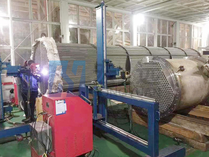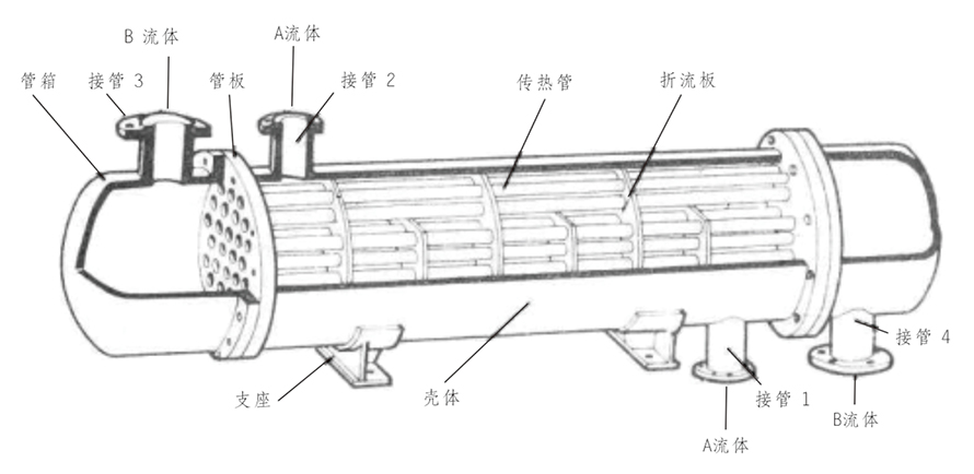 列管式換熱器主要由殼體、營板、換熱管、封頭、折流擋板等組成??煞謩e采用普通碳鋼或不銹鋼制作。在進行換熱時,一種流體由封頭的連結(jié)管處進入,在管流動,從封頭另一端的出口管流出,這稱之管程;另一種流體由殼體的接管進入,從殼體上的另一接管處流出 ,這稱為殼程。